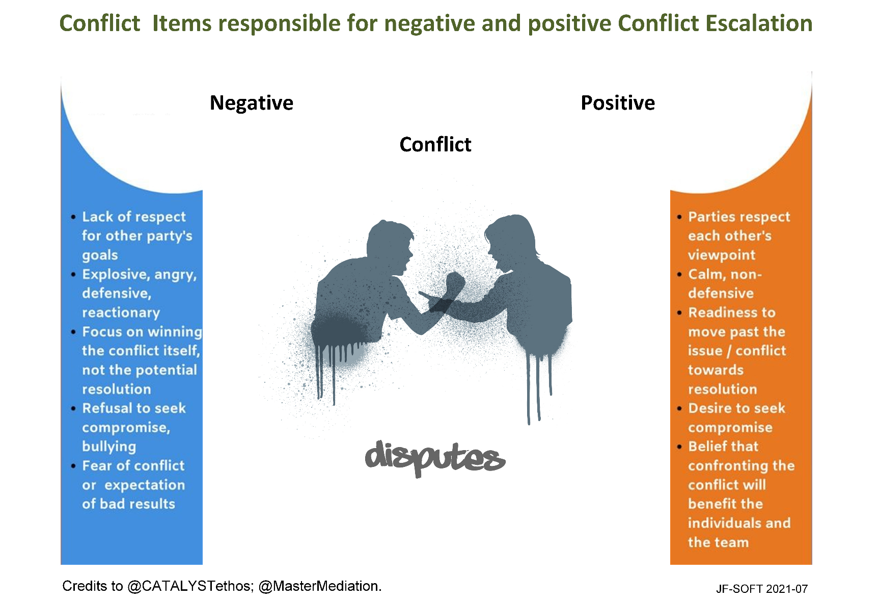 As such, we need to understand a conflict first and see if it is possible to work for both parties sharing the conflict. A very important capability also to avoid conflicts before they are coming up in full swing. We see the following goals in conflict mediation: