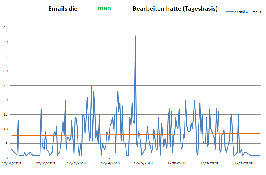 In order to bring the idea closer to you, you will find diagrams for study and discussion below showing how many e-mails were received or sent, on which day, on which topic or subject, by whom.